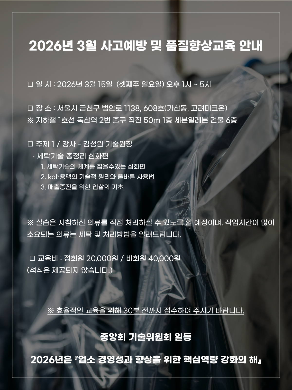 (사)한국세탁업중앙회는 지난 2025년 8월 21일 (목) 오후 3시 민주당 서울시당 을지키는 민생실천 위원회(이하, 을지위원회), 서울시 동작구 구의회(김은하 의원)와 함께 “지자체 관내 소규모 세탁소 지정폐기물 처리 무상지원 사업 확대”를 위한 민관 합동 정책 간담회를 가졌다.